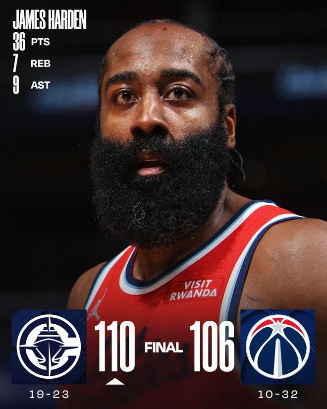 哈登36+7+9 快船胜奇才进入附加赛区