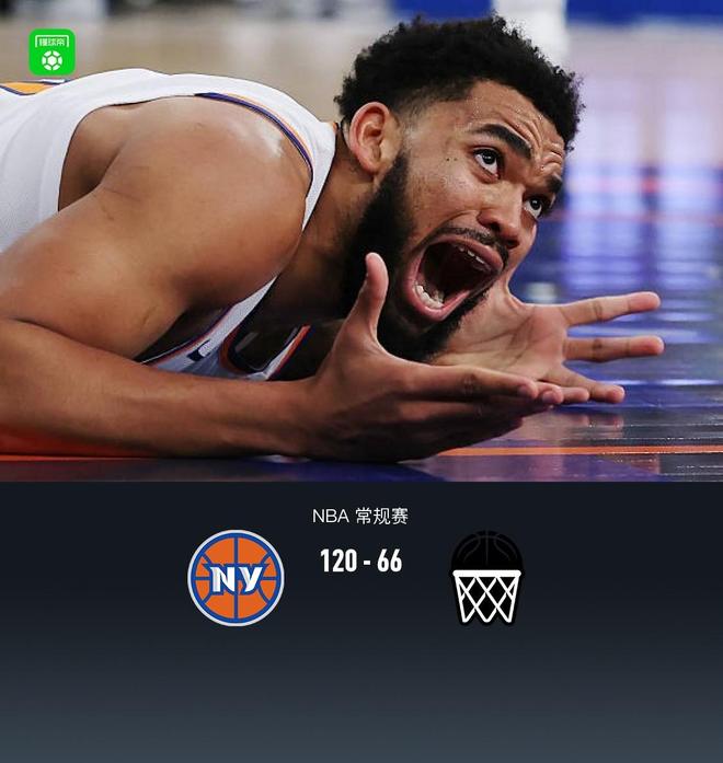 尼克斯120-66血洗篮网54分,布伦森20分,沙梅特三分6中6得18分