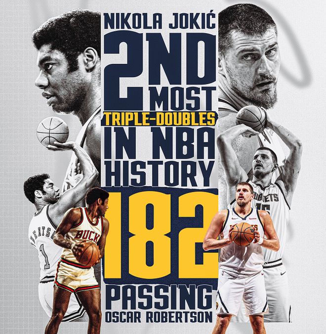 据NBA官网数据统计,此役过后,约基奇生涯抢断数来到1000次,正式突破1000次抢断大关。同时,这是约基奇生涯第35次单场送出15+助攻,除他之外NBA历史所有中锋加起来仅14次做到这一点。在另外一项数据统计中,这是约基奇本赛季第18个三双,联盟最多;同时,这是约基奇生涯第182个三双,超越大O独居NBA历史第2位,仅次于威少(207个)。约基奇距离威少仅差25个三双,却比威少少打了506场比赛,威少的NBA历史三双王纪录恐怕是保不住了,约基奇最快本赛季、最慢下赛季能够超越威少成为新NBA历史三双王。