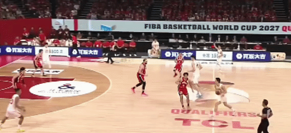 中国队数次进攻,手感还在寻找。但是篮下对位实力上,中国队的强度是足够的。旋即,李弘权上场,换下朱俊龙。中国队调整战术,赵睿用个人能力突破上篮拿分: