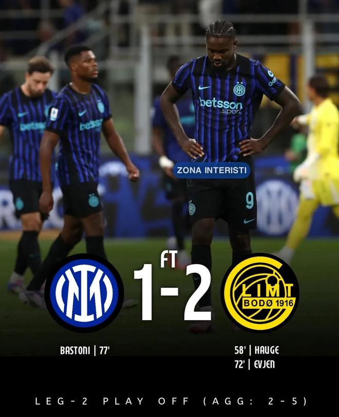 相信大家看到这个结果心里都不好受,毕竟主客场被挪威球队双杀的确不光彩,而且无缘16强也注定国米的欧冠奖金收入停在了7120万欧,少了2000万欧的晋级奖金和1/8决赛主场几百上千万欧的门票收入,甚至对国米的品牌形象和商业价值产生负面影响。