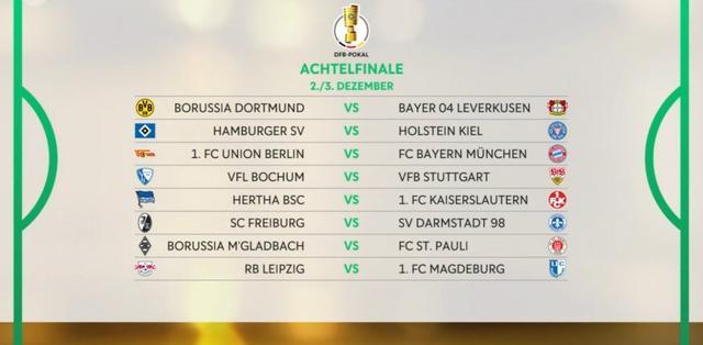 德国杯八分之一决赛对阵:多特vs药厂,柏林联合vs拜仁
